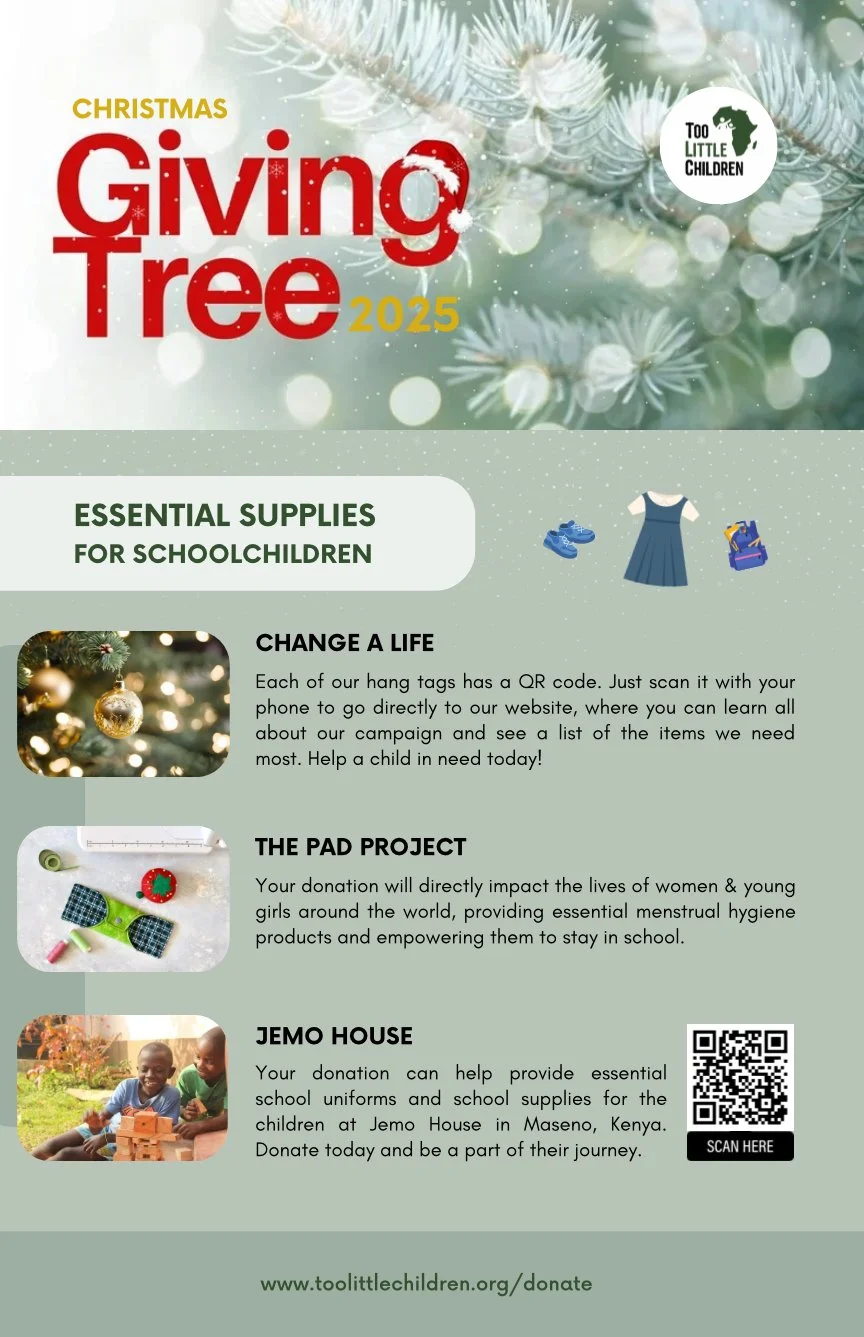 This holiday season, spread joy by hosting a Christmas Giving Tree in your community! We provide everything you need to make it easy and meaningful—our kit includes festive decorations, hang tags, and promotional materials. All you need is a tree (choose any size that works for you)!