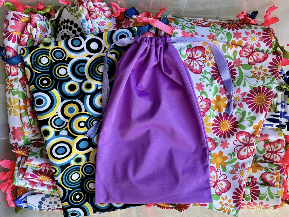 Learn how to sew a DIY drawstring wet bag using PUL fabric. This tutorial features custom dimensions specifically designed to fit our reusable sanitary pads. Perfect for beginners and charity sewing projects.